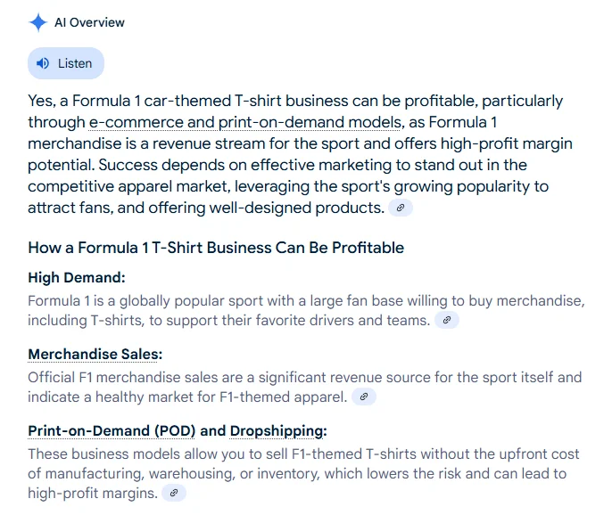 According to Google trends, Formula 1 T-shirts are among the most profitable niches right now. When you sell what’s trending, your ads convert faster and cheaper.